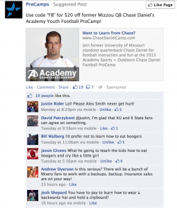 Chase Daniels ad for his skills camp is met with sarcasm from local fans.